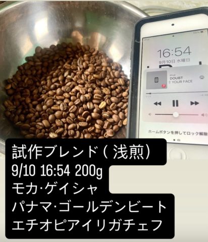 ブレンドの意図は「パナマゲイシャに近い味」という無謀な考えですが、「パナマゲイシャは美味いけど、普段使いには適さないので代替品を作りたい」という思いつきです。